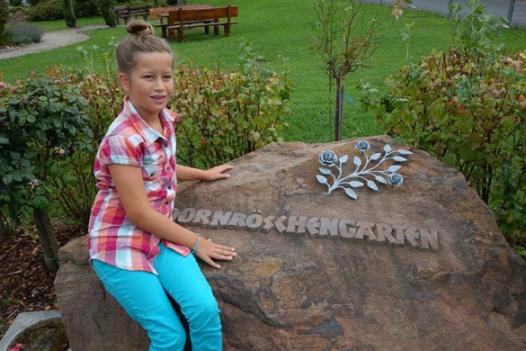 Weiter sind dort zu entdecken: der renovierte historische Dornröschenbrunnen, der große "Dornröschenstein", schmiedeeiserne Rosenbögen und die Figur des Dornröschens: Sie ist zugleich eine der Stationen auf dem Märchenweg. Auch Geocache-Sucher werden im Dornröschengarten fündig … Mit seinen vielfältigen Spielmöglichkeiten, mit Wiese, gemütlichen Tischen und Bänken für Picknicks ist der Dornröschengarten ein schöner Begegnungsplatz für alle Generationen - für Bewohner wie für Gäste des Dorfes.